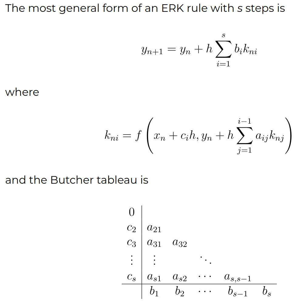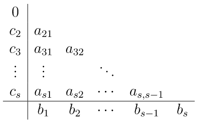 objectButcher tableau for explicit s-stage Runge-Kutta methods.